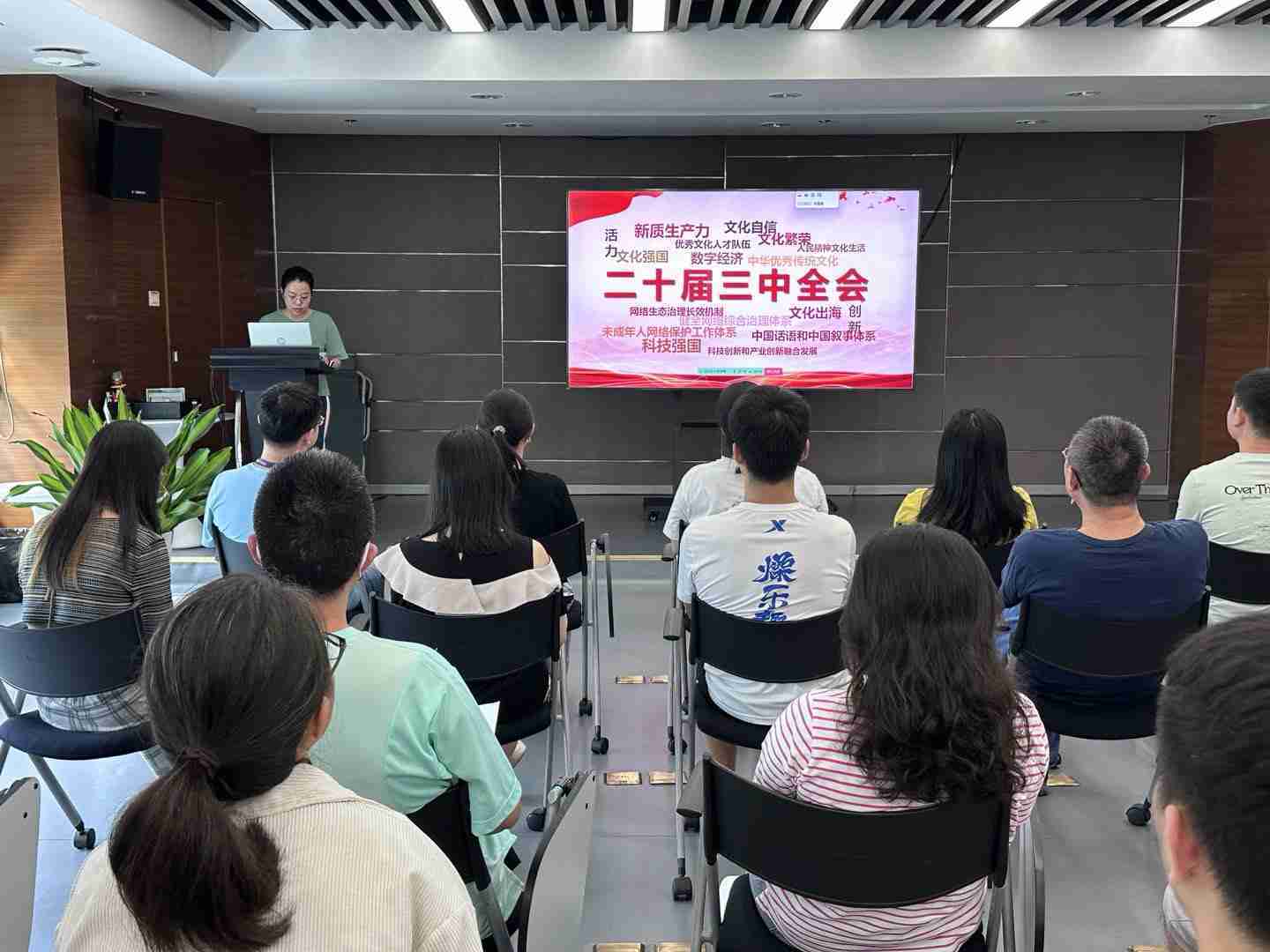 与会人员深入学习《决定》内容。。党的二十届三中全会提出必须增强文化自信,,,发展社会主义先进文化,,,弘扬革命文化,,传承中华优秀传统文化,,加快适应信息技术迅猛发展新形势,,,构建更有效力的国际传播体系,,这为广大文化产业工作者指明了奋斗方向。。