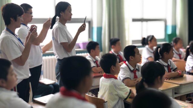 武山老师们在回龙观育新学校的讲台上做课